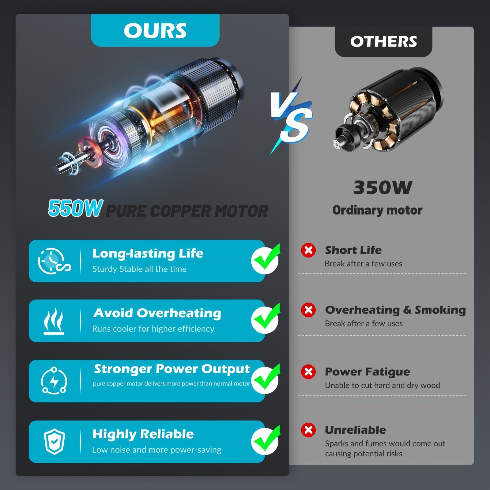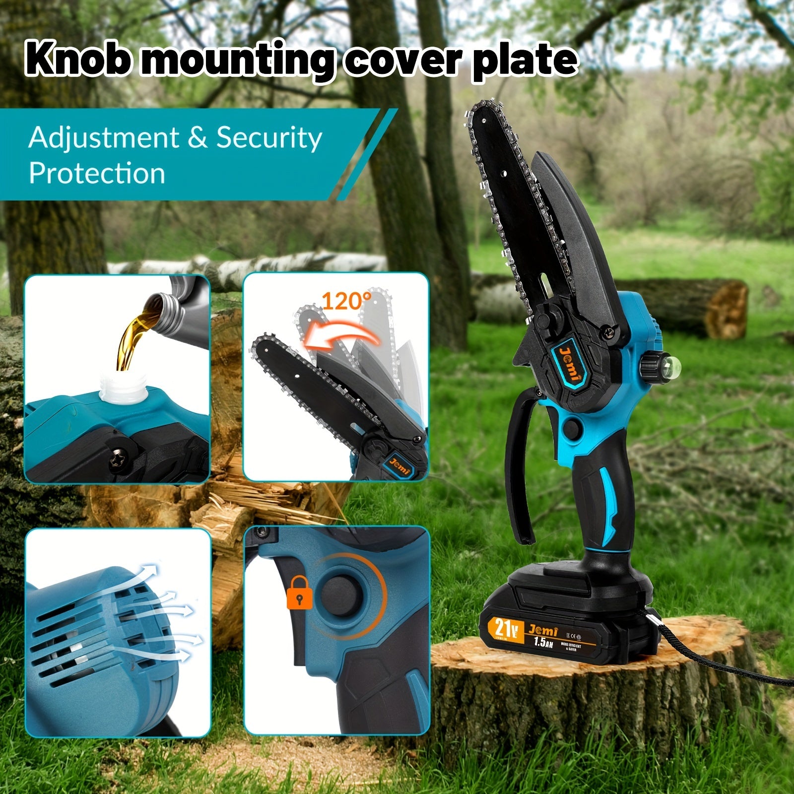 Mini motosserra sem fios Jemi Tool de 15,24 cm com bateria de 1/2×21 V, potente motosserra elétrica portátil com lubrificação automática, leve (1,0 kg), fácil de utilizar para podar, cortar e aparar.