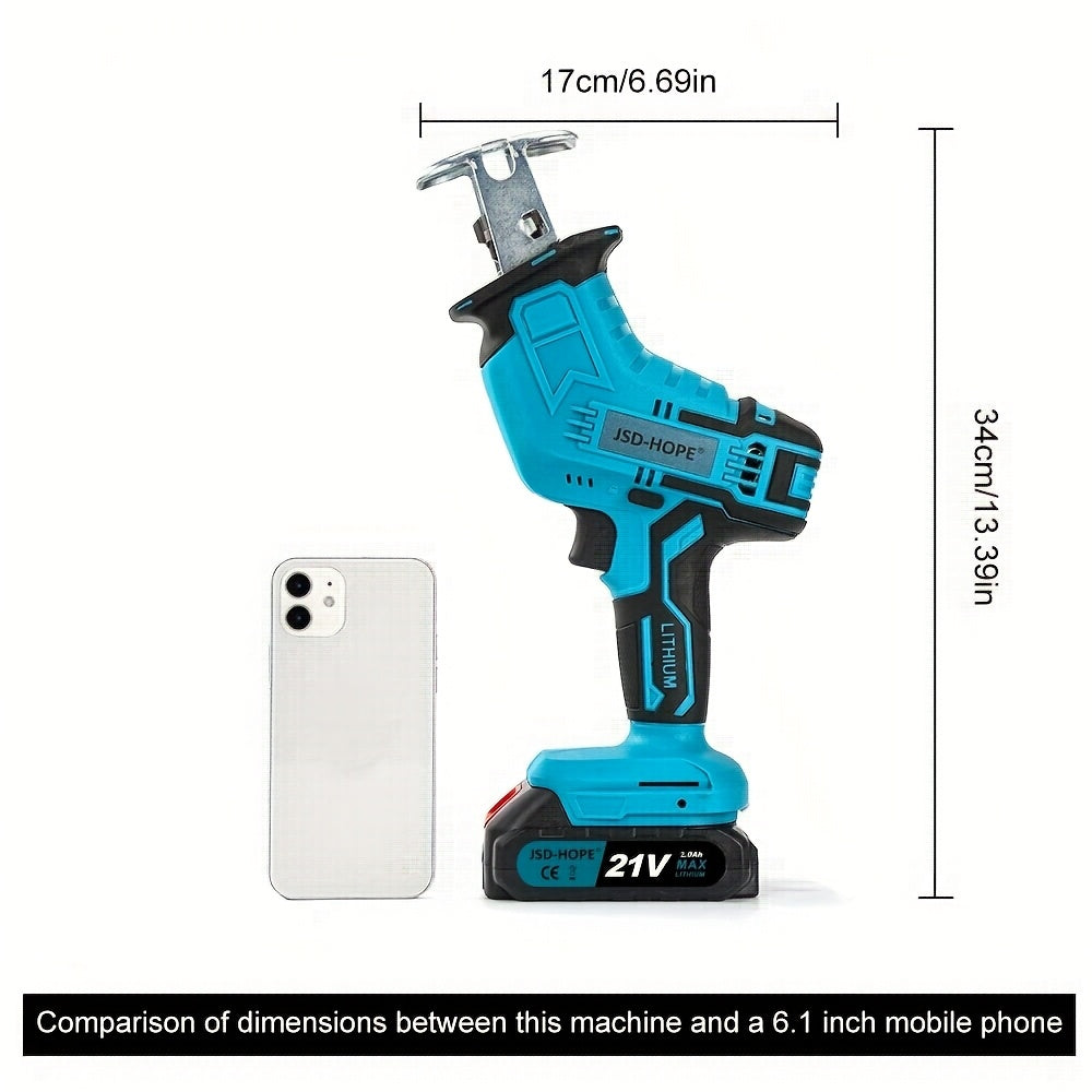 JSD-HOPE - Serra Elétrica Recíproca Similar à Motosserra (Simulação) - Serra elétrica portátil com bateria de iões de lítio, compatível com as lâminas A23/A33/A43/A53, ficha europeia (220-240V) para projetos de jardinagem e paisagismo.