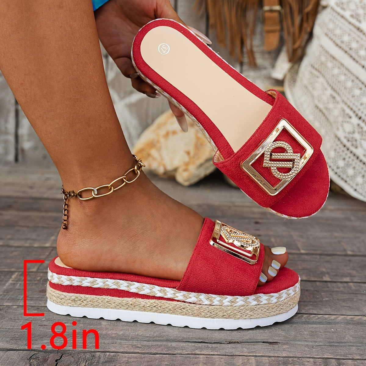 Sandálias de plataforma para mulher para praia com um elegante detalhe em palha.