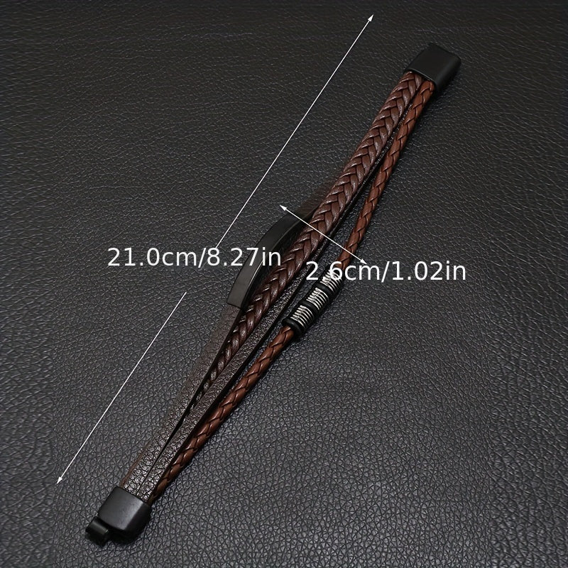 Nova pulseira masculina vintage, feita à mão, com várias camadas de contas, fecho magnético e revestimento em PU.
