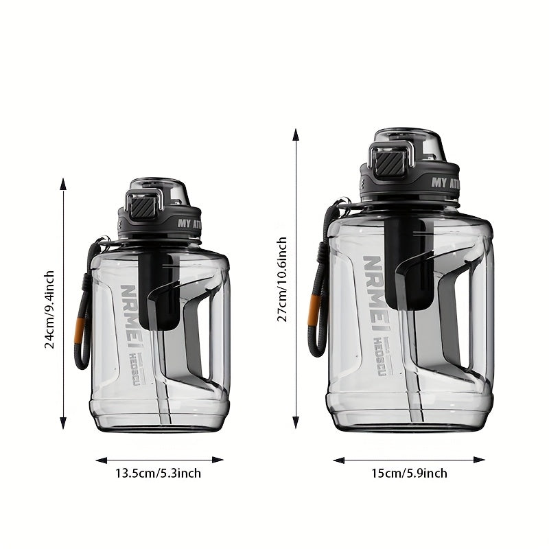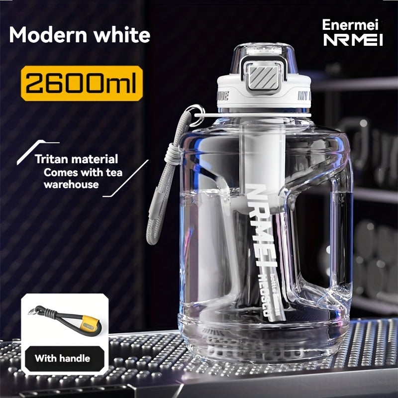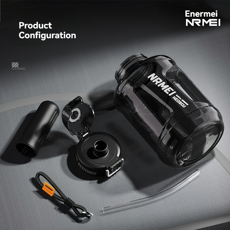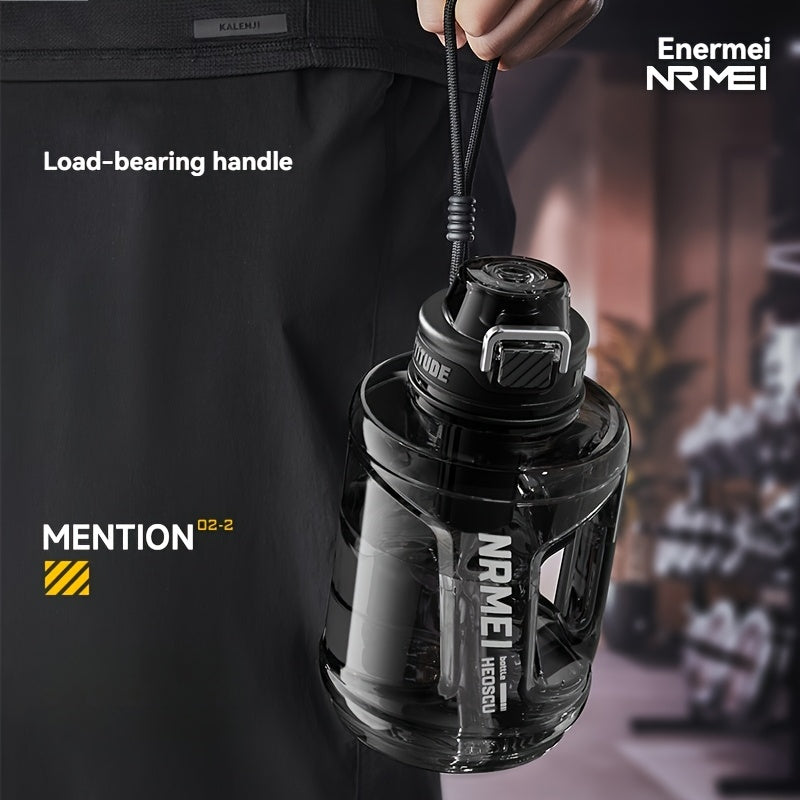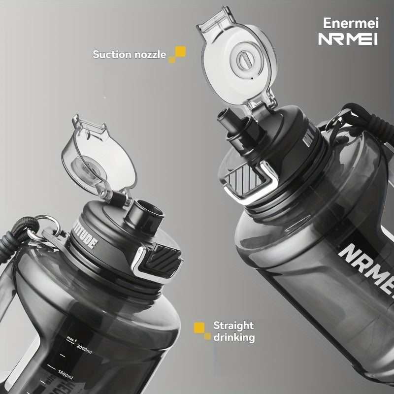 Garrafa de água NRMEI de 1,9 litros com marcador de tempo - Garrafa de hidratação de 1,9 litros livre de BPA, garrafa de água desportiva grande com palhinha e tampa, pega, adequada para campismo e ginásio.