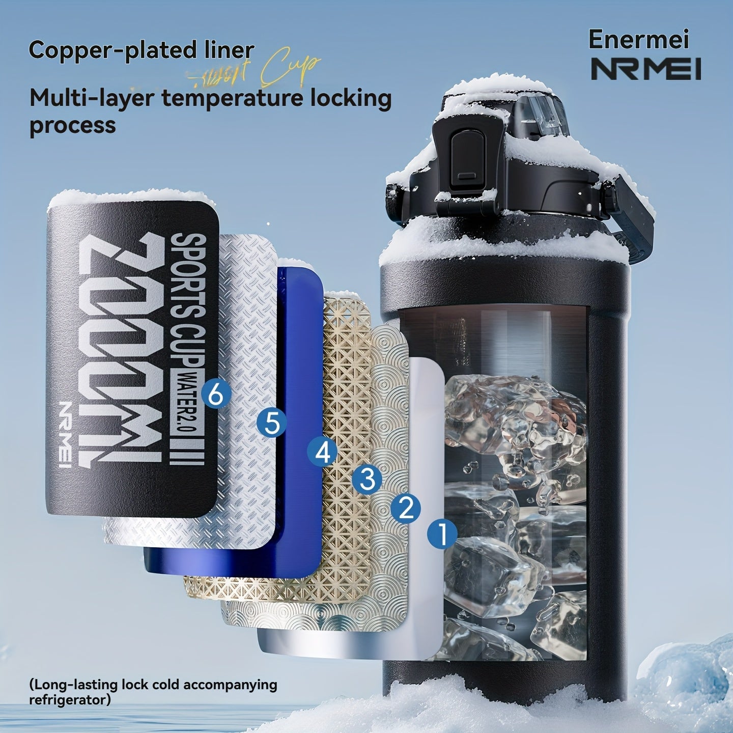 NRMEI Insulated Water Bottle with Straw, Double-Wall Vacuum Stainless Steel Thermos with Handle, Perfect for Sports and Gym Use