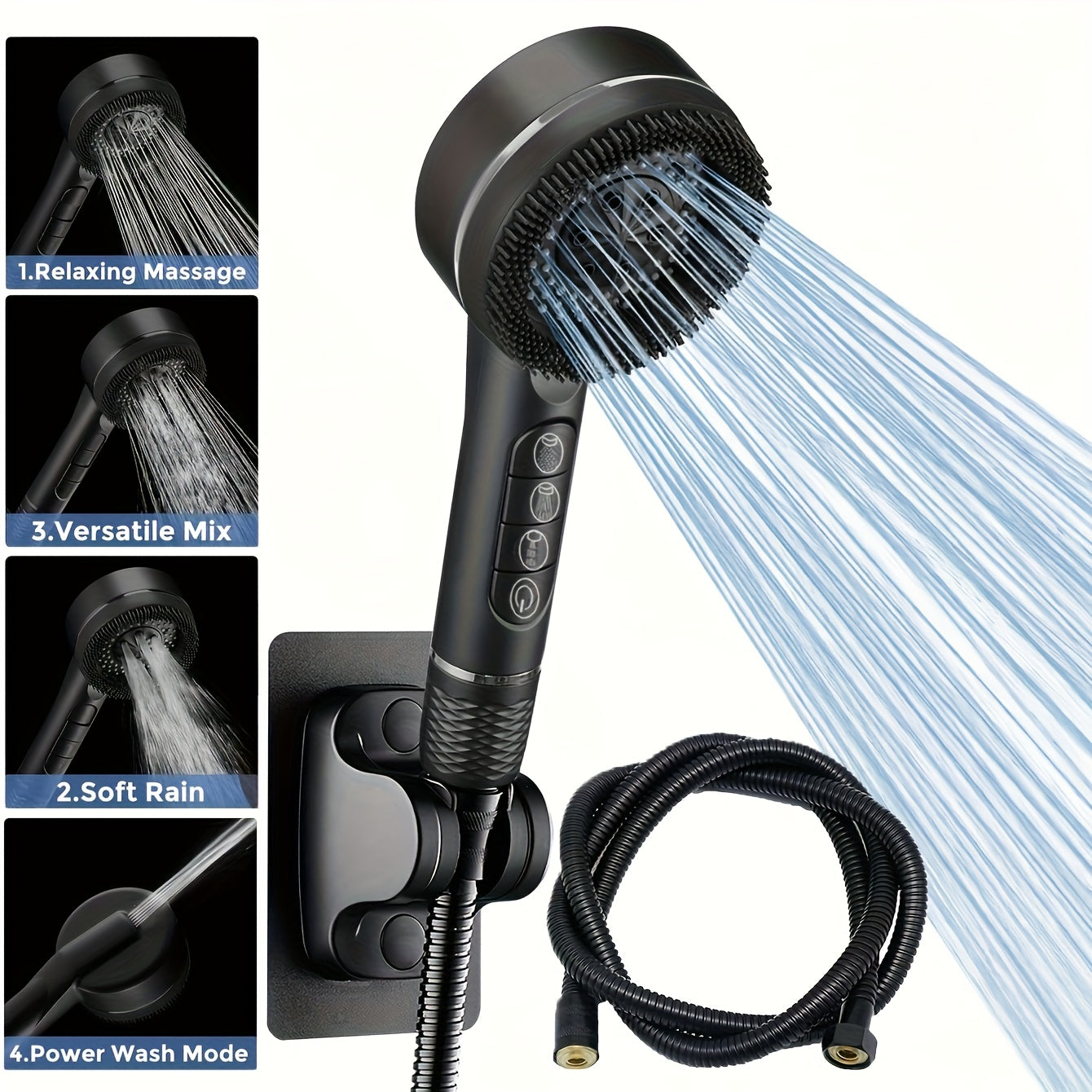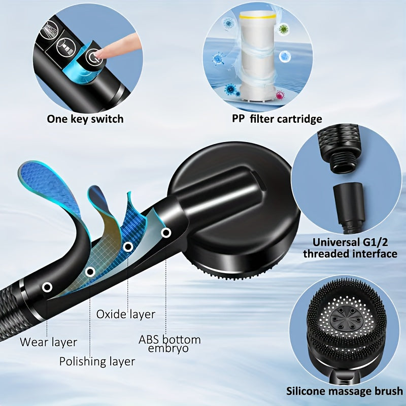 Chuveiro Prague Piano Key: Tubo denso de alta pressão de 1,5 m, mangueira de chuveiro de parede sem furos e conjunto de pulverizador de mão para uso doméstico.