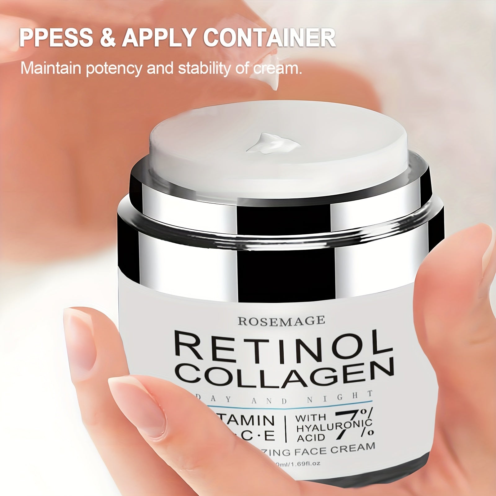 Creme de Retinol e Colagénio, Creme Facial Hidratante Intensivo e Refirmante para Peles Sensíveis, Bege Claro, Uso Diurno e Noturno, Enriquecido com Vitaminas A, B, C e E, Ácido Hialurónico para Iluminar a Tez, Acabamento Suave e Radiante, 50ml/1.