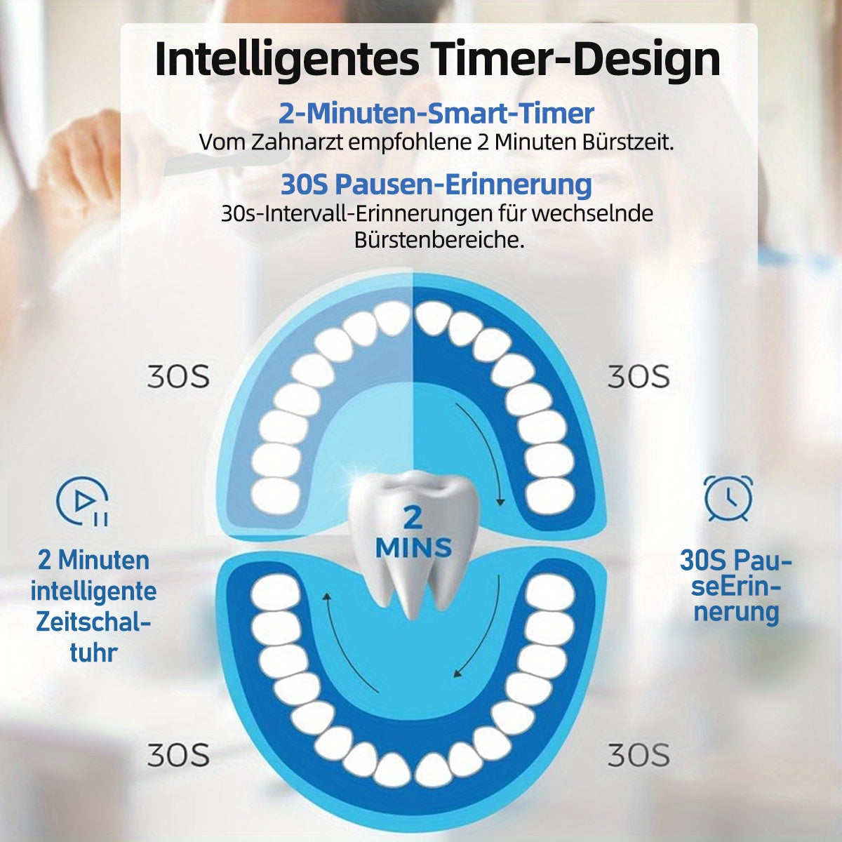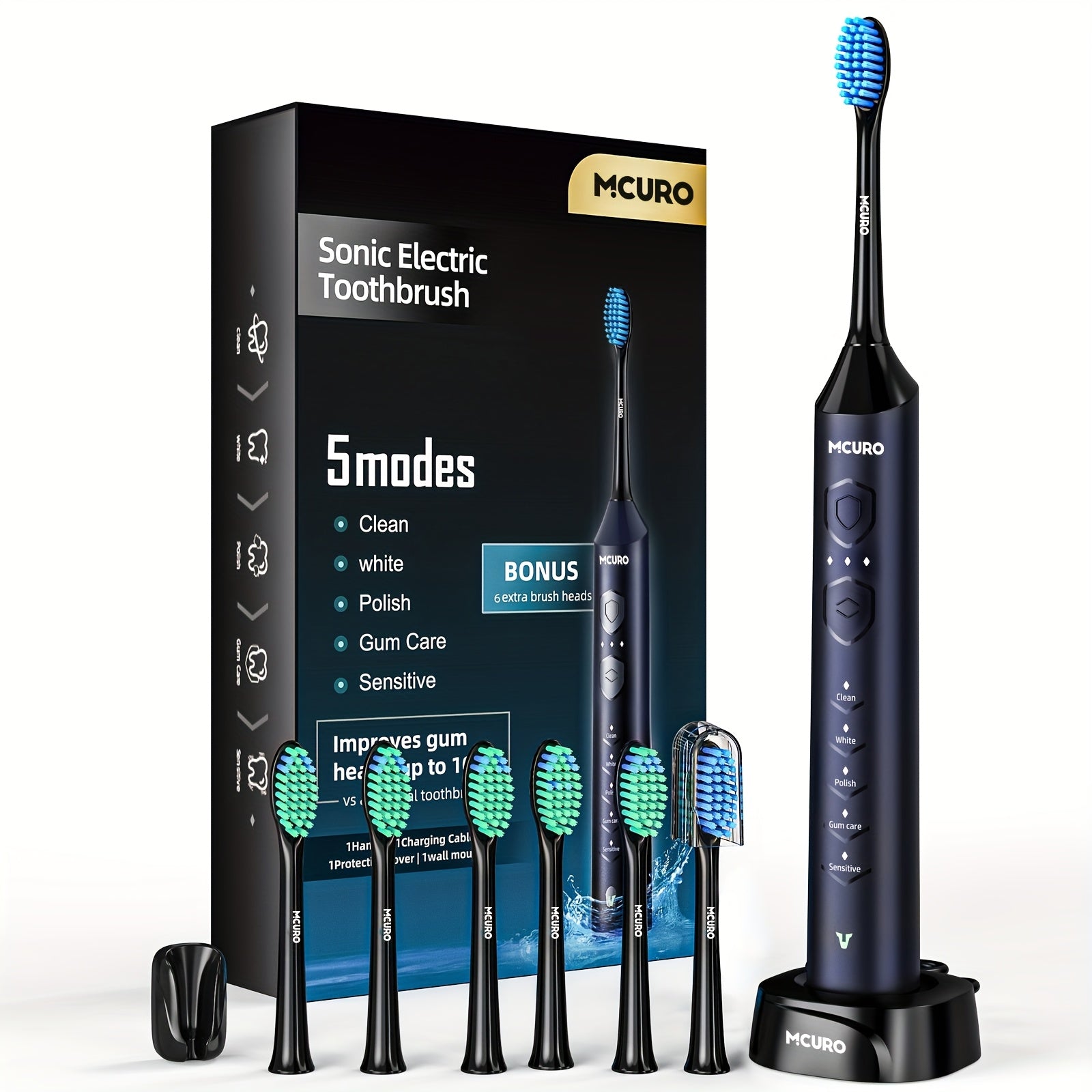 Escova de dentes elétrica sónica recarregável, limpeza profunda com 5 modos, 6 cabeças de escova de substituição, equipada com base de carregamento USB, portátil, ideal para viagens, dormitórios, presente, preta, rosa, azul.