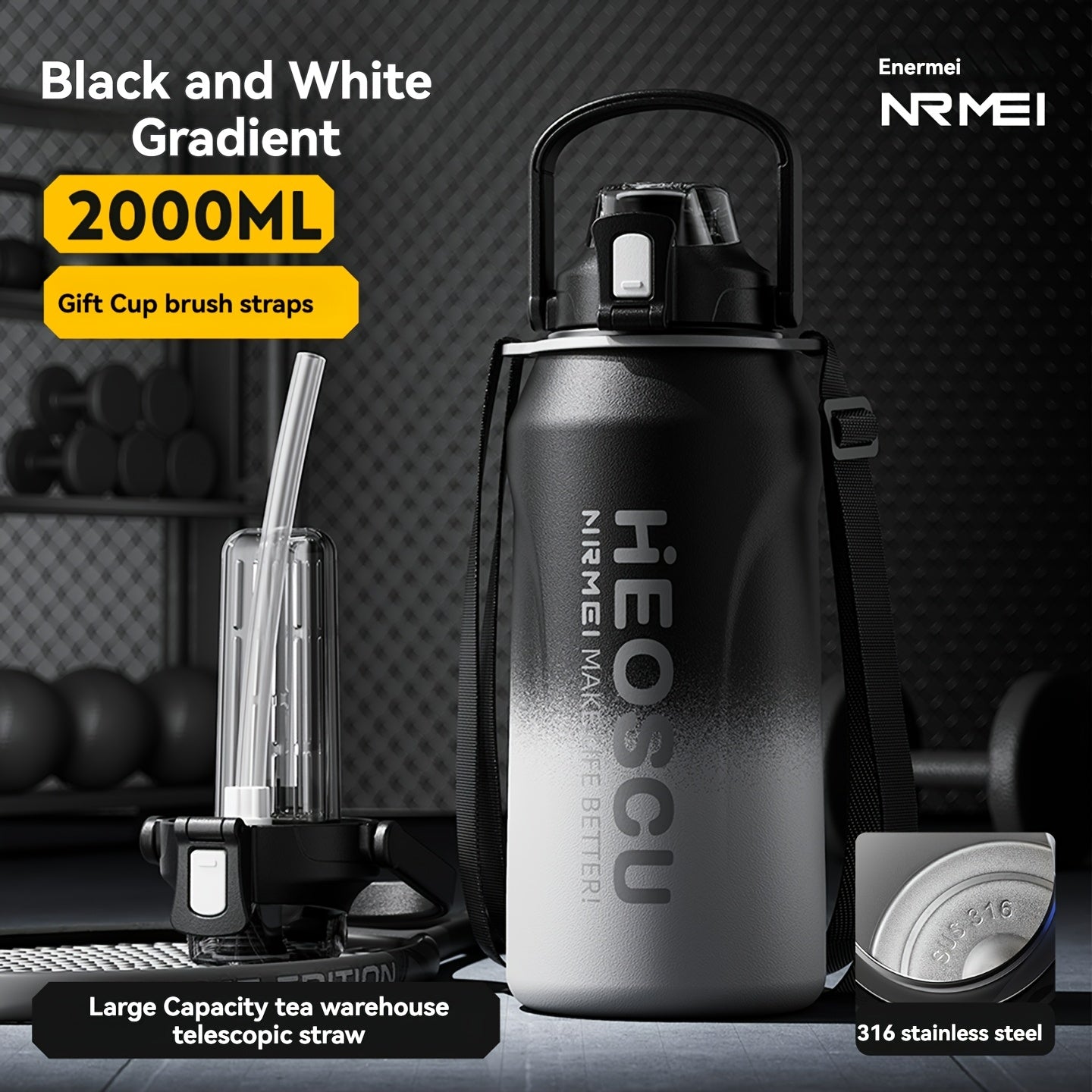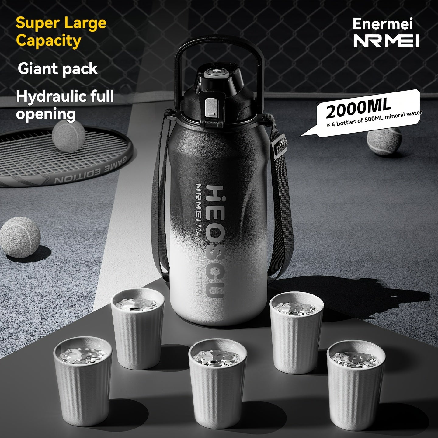 Garrafa térmica em aço inoxidável, mantém a temperatura quente ou fria durante 24 horas, com palhinha e pega/correia, caneca térmica de viagem com parede dupla, livre de BPA.