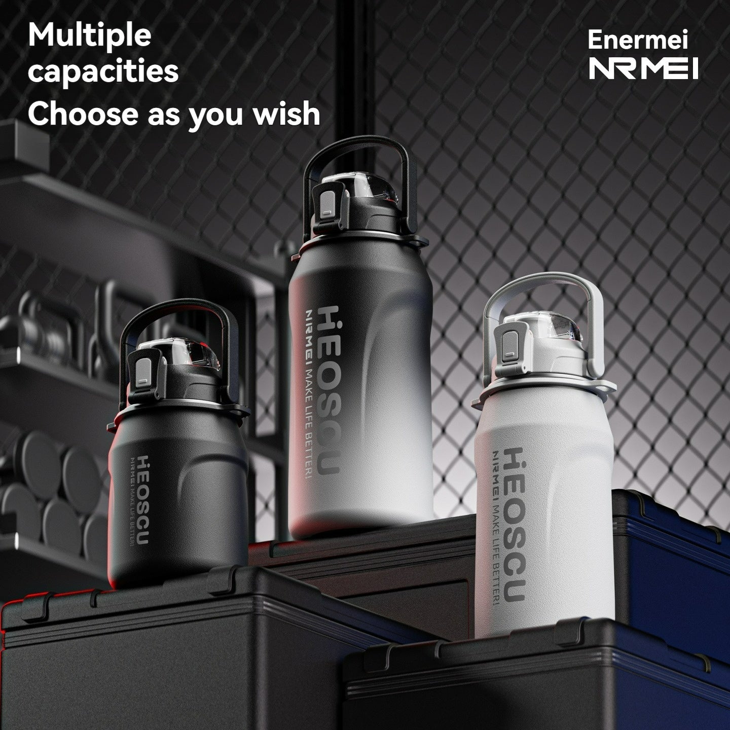 BIGRD 1000ml stainless steel sports Bottle leak proof water bottle double cap Bottle suitable for carbonated water bottle, silicone handle cap/direct drinking cap, suitable for sports/outdoor/camping/fitness/yoga, Yoga Gear,