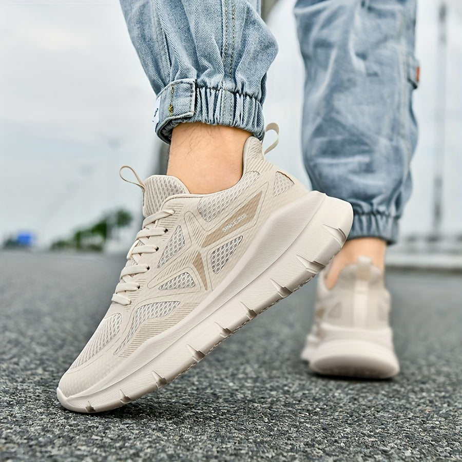 Ténis desportivos unissexo para corrida de rua, ténis casuais, respiráveis e leves de cano baixo com sola grossa para todas as estações, calçado desportivo confortável e durável para caminhadas e atividades ao ar livre - fecho com atacadores.