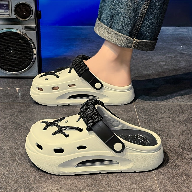 Women's White Clog with Thick Platform Heel - Adjustable Strap & Buckle, Beige - All-Season Indoor/Outdoor Beach Shoes, Lightweight Cushioned Sole, DIY Hole-Punchable Design (No Tools) for Garden, Pool, Casual Wear, Shoes For